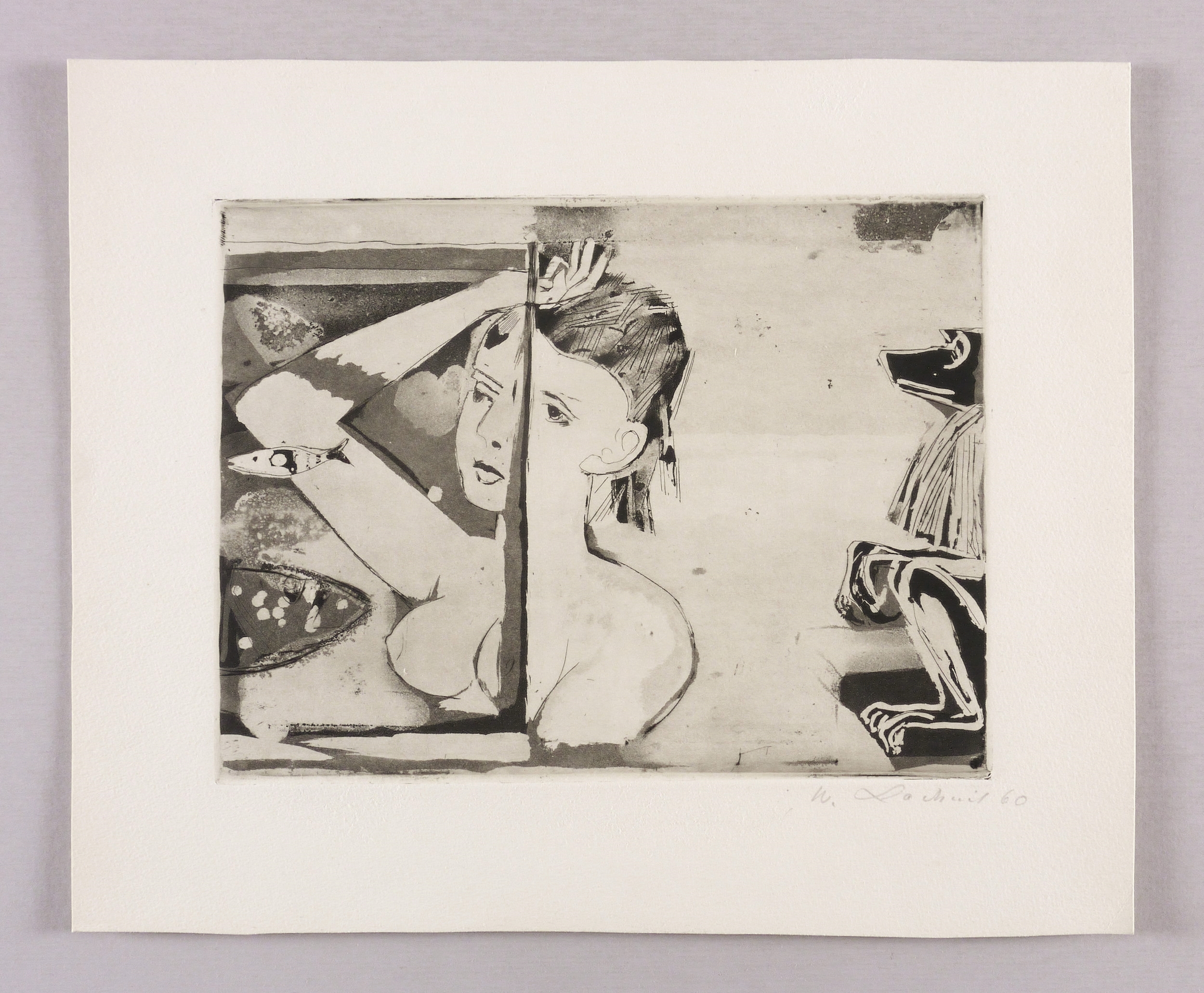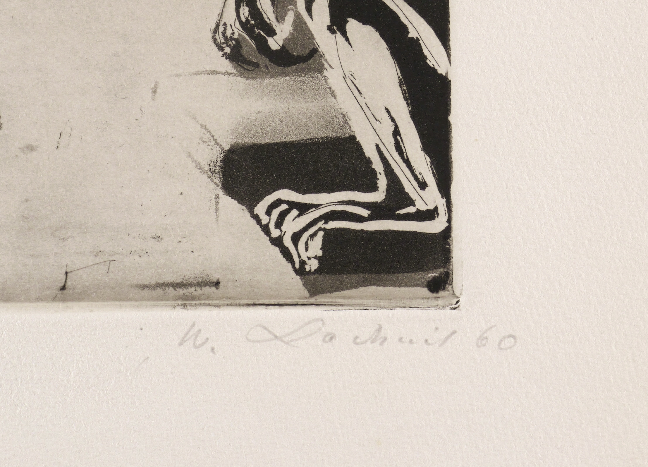 1958-1960. Radierung / Aquatinta & Kaltnadel, in Schwarz, auf festem hellgelbem Velinkarton. – Originale Künstlergrafik, von Wilhelm Lachnit. – 18,6 x 24,6 cm (Darstellung / Platte), 28 x 34 cm (Blatt).
