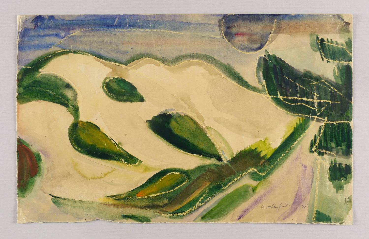 Rechts unten in Bleistift signiert und datiert: ″W. Lachnit 58″. – Rückseite mit leichten Montagespuren. Sehr guter Zustand.