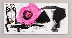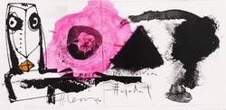 1996. Algrafie / Feder- & Pinselalgrafie, in Schwarz, aquarelliert, auf glattem weißem Velin. – Originale Künstlergrafik, von Hernando León. – Unikat. – 10,4 x 21,0 cm (Darstellung / Blatt).