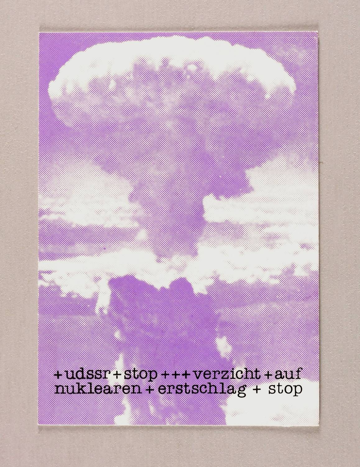 1982. Farbsiebdruck / Farbserigrafie, in Violett & Schwarz, auf weißem Karton. – Originale Künstlergrafik, von Wolfgang Petrovsky. – 15,0 x 10,8 cm (Darstellung / Blatt).