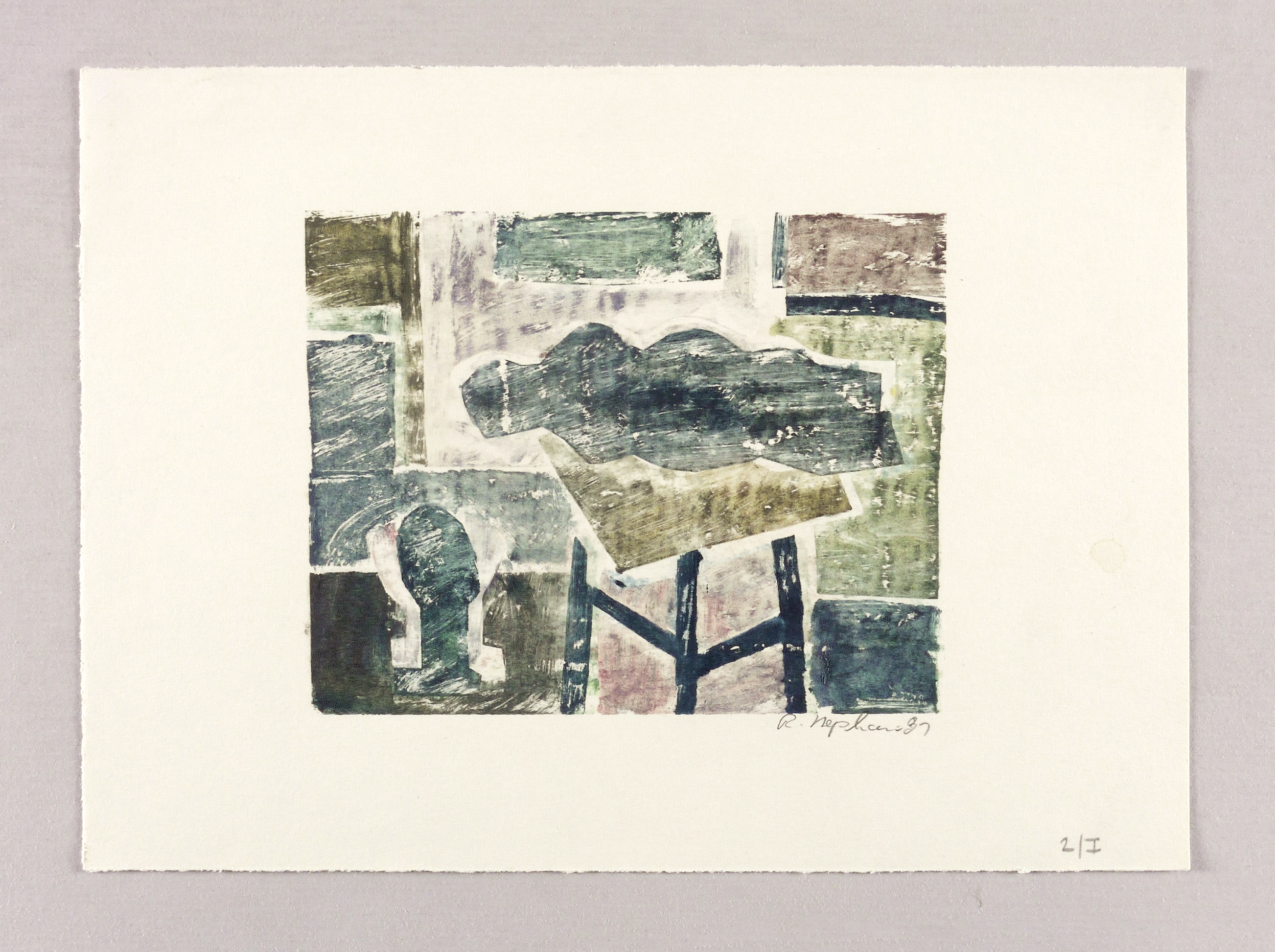1989. Farbmonotypie, in 8 Farben, auf hellchamois Velin. – Originale Künstlergrafik, von Rosemarie Stephan (Julia). – Unikat. – 19 x 25 cm (Blatt), 11,5 x 14,5 cm (Darstellung / Druckbild).