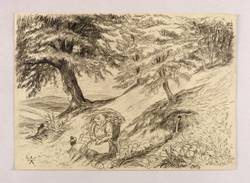 1945-1950. Zeichnung / Kohle, auf leichtem gelbem Velin. – Originale Künstlergrafik, von Karl Enderlein. – Unikat. – 21,2 x 29,6 cm (Darstellung / Blatt).