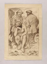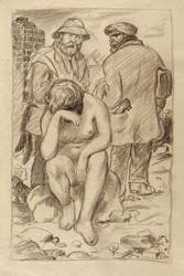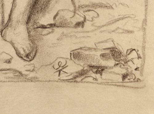 1945-1950. Zeichnung / Kohle, auf leichtem gelbem Velin. – Originale Künstlergrafik, von Karl Enderlein. – Unikat. – 26,5 x 17,0 cm (Darstellung), 31 x 21 cm (Blatt).