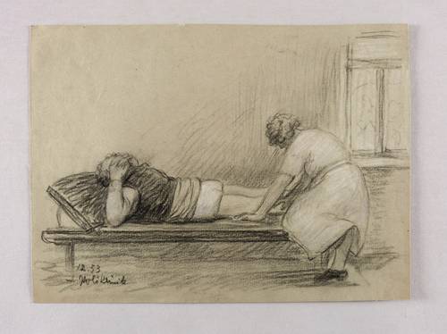 Links unten in der Darstellung bezeichnet: ″12.53 / Poliklinik″. Verso von fremder Hand bezeichnet: ″KARL ENDERLEIN″. – Aus einem größeren Werkkonvolut, das wohl auf den künstlerischen Nachlass von Karl Enderlein zurückgeht. – Provenienz: Sammlung Erhard Frommhold, Dresden. – Sehr guter Zustand.