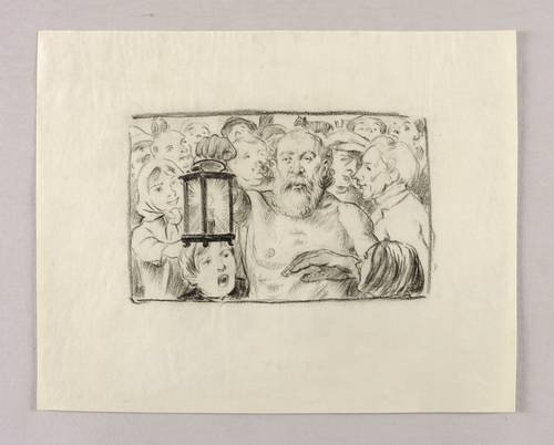 1920-1930. Zeichnung / Kreide, in Schwarz, auf leichtem hellgelbem Maschinenpapier. – Originale Künstlergrafik, von Karl Enderlein. – Unikat. – 22 x 28 cm (Blatt), 11,5 x 18,0 cm (Darstellung).