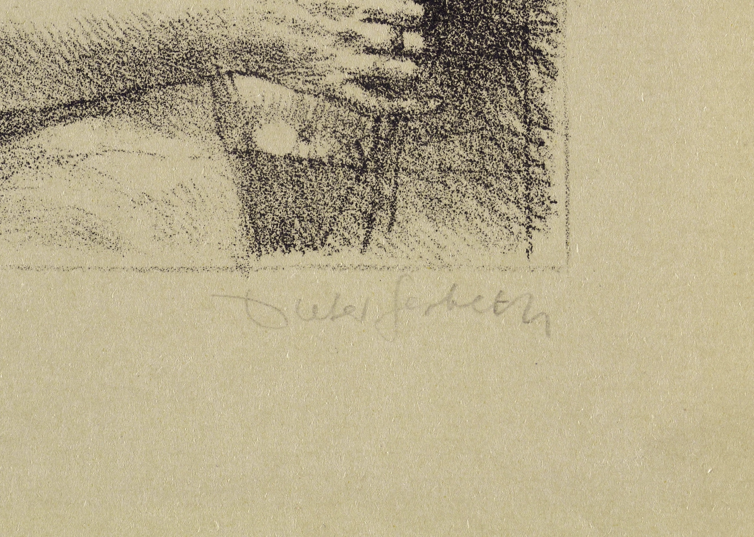1979. Lithografie / Kreidelithografie, in Schwarz, auf olivegrün getöntem Maschinenbütten. – Originale Künstlergrafik, von Dieter Gerbeth. – Auflage Exemplar Nr. 4/40. – 14,8 x 11,0 cm (Darstellung / Druckbild), 22 x 17 cm (Blatt).
