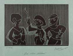 Rechts unten in Bleistift signiert und datiert: ″hendrik 85″. Links Auflagenbezeichnung: ″I/1/13″. Mittig Titel: ″Drei schöne Mädchen″. – Sehr guter Zustand.