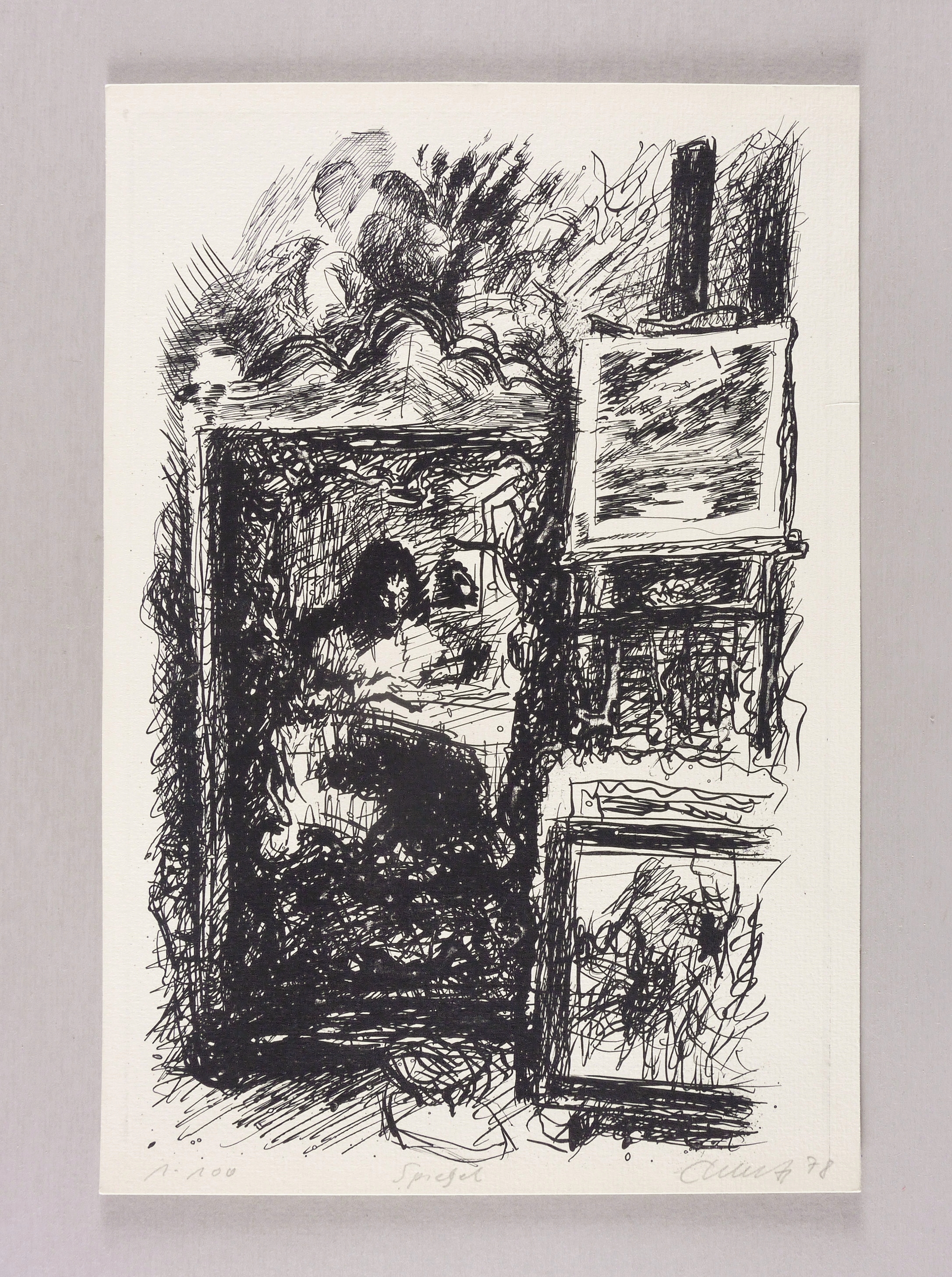 Werner-Juppe G 50 b. – Links unten in Bleistift signiert und datiert: ″Ehbets 78″. Rechts Auflagenbezeichnung: ″1-100″. Mittig Titel: ″Spiegel″. – Sehr guter Zustand.