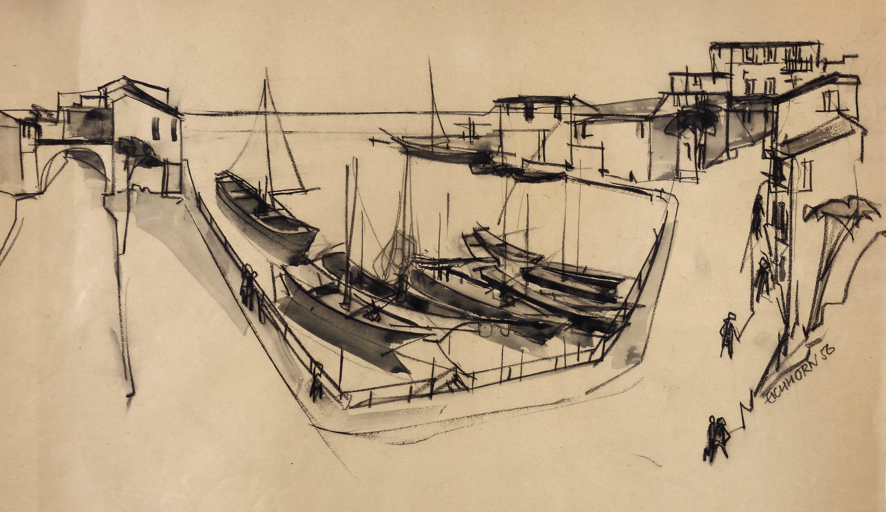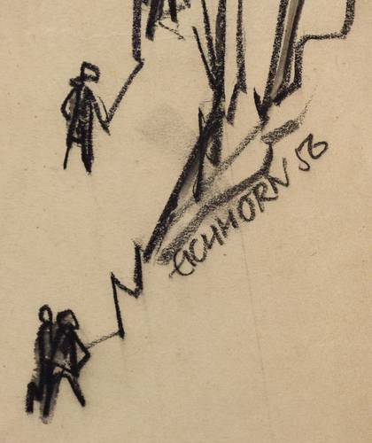 Rechts in Kreide signiert und datiert: ″EICHHORN 1956″. – Papier etwas gewellt. Mäßig guter Zustand.