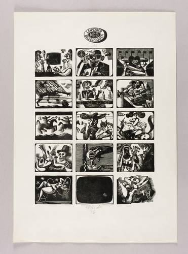 1976. Holzschnitt, in Schwarz, auf glattem hellchamois Werkdruck. – Originale Künstlergrafik, von Volker Wendt. – 32,7 x 25,4 cm (Darstellung / Druckbild), 49 x 35 cm (Blatt).