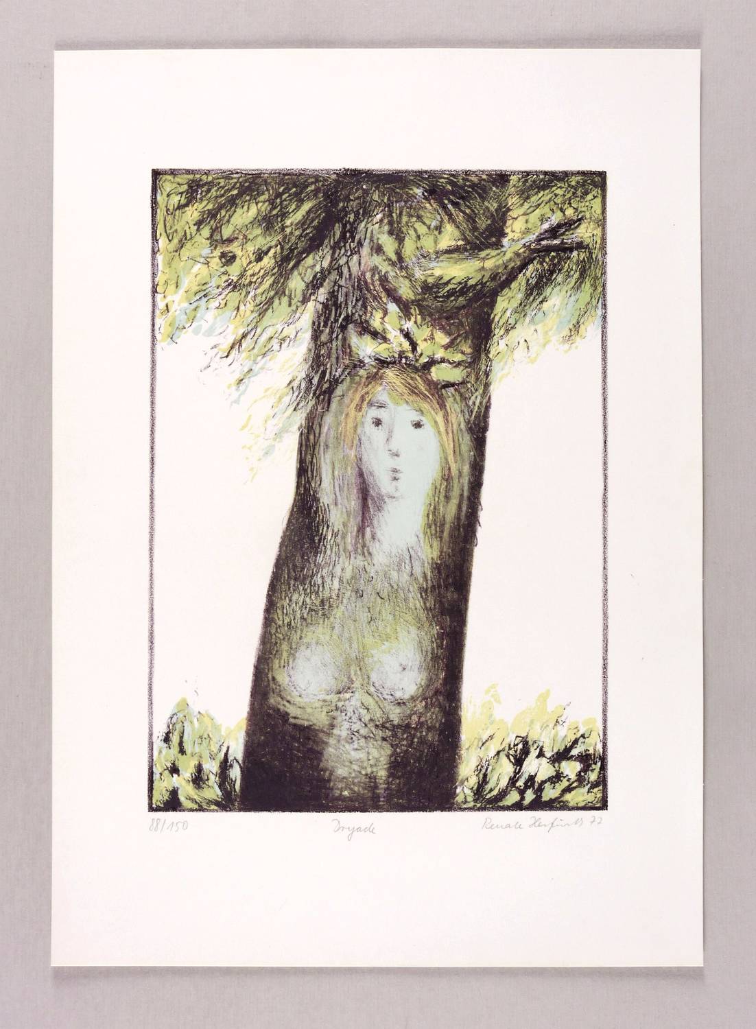 Rechts unten in Bleistift signiert und datiert: ″Renate Herfurth 77″. Links Auflagenbezeichnung: ″88/150'″. Mittig Titel: ″Dryade″. – Sehr guter Zustand.