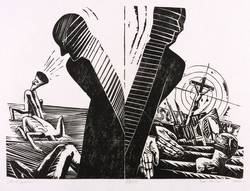1976. Holzschnitt, in Schwarz, auf rauem weißlichem Similijapan. – Originale Künstlergrafik, von Thea Kowar. – Auflage Exemplar Nr. 3/20. – 25,9 x 35,8 cm (Darstellung / Druckbild), 34 x 48 cm (Blatt).