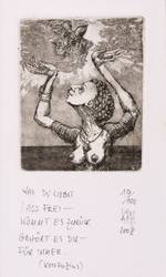 2008. Radierung / Strichätzung & Aquatinta, in Schwarz, auf weißem Velinkarton. – Originale Künstlergrafik, von Klaus-Peter Holzhauer. – Auflage Exemplar Nr. 19/100. – 9,0 x 7,2 cm (Darstellung / Platte), 20 x 10 cm (Blatt).