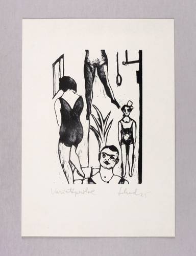 Richter-Swozilek-Violand 35. – Rechts unten in Bleistift signiert und datiert: ″Schad 25″. Links Titel: ″Varietéprobe″. – Wohl späterer Abzug vom originalen Druckstock. Ausstellung: 1996 ″Christian Schad. Graphik″ im Vorarlberger Landesmuseum Bregenz (Kat.-Nr. 35, Abb.-Nr. 34). – Tadellos erhalten. Sehr guter Zustand.