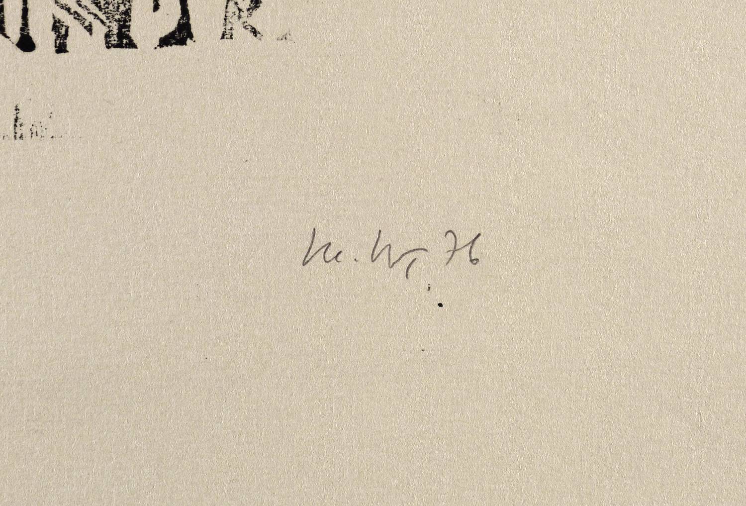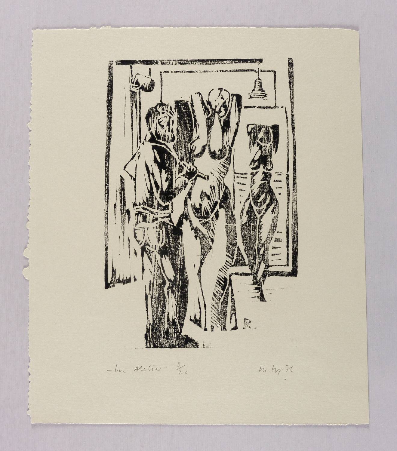 Rechts unten in Bleistift unleserlich signiert und datiert: ″(...) 76″. Links bezeichnet: ″Im Atelier 8/20″. – Sehr guter Zustand.