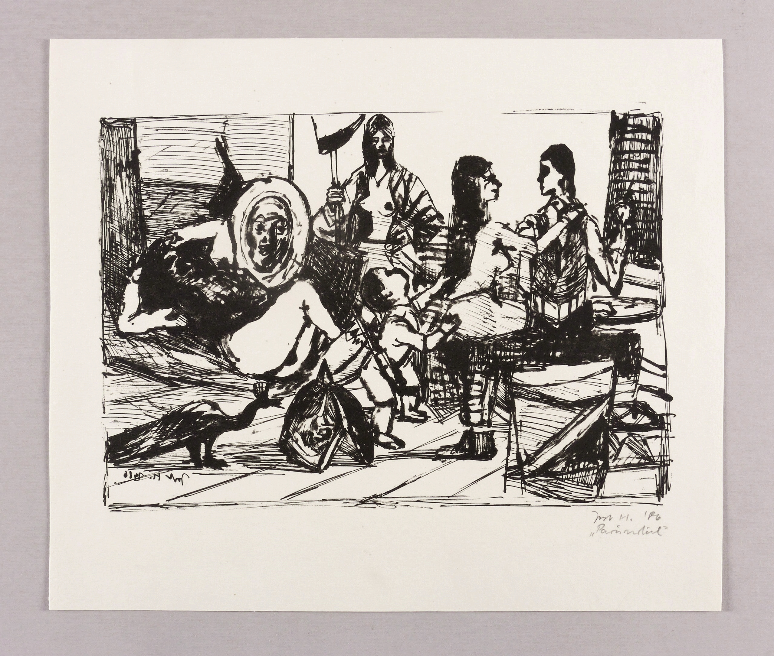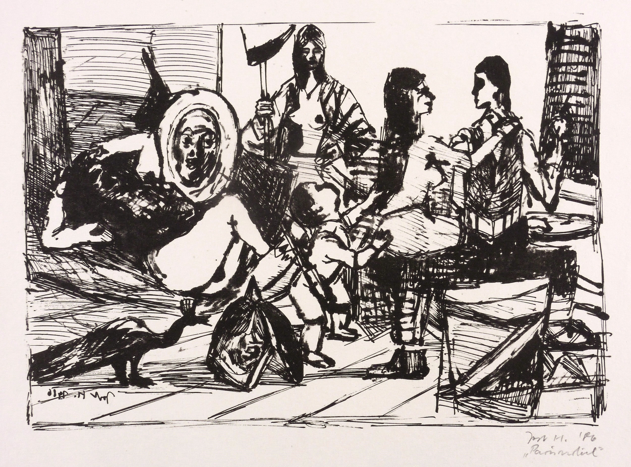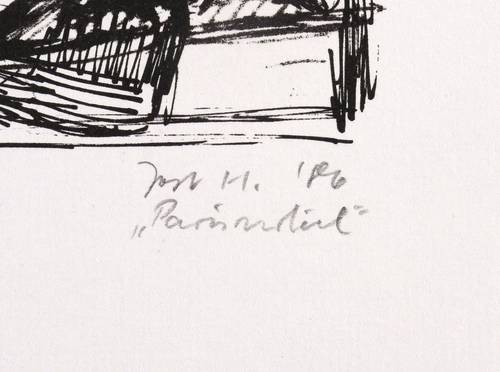 Rechts unten in Bleistift signiert und datiert: ″Jost H. 86″. Darunter Titel: ″Parisurteil″. – Sehr guter Zustand.