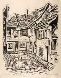Rechts unten in Bleistift signiert: ″Horst Gernandt″. Links bezeichnet: ″Urschnitt (Schlossgasse)″. – Das Japanpapier original in den Ecken auf Trägerpapier gesetzt. Guter Zustand.