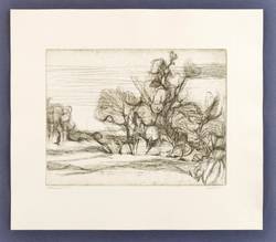 1981. Radierung / Vernis mou & Strichätzung, mit Plattenton, in Schwarz, auf hellem Karton. – Originale Künstlergrafik, von Gottfried Körner. – Probedruck. – 23,3 x 30,7 cm (Darstellung / Platte), 37,5 x 42,5 cm (Blatt).