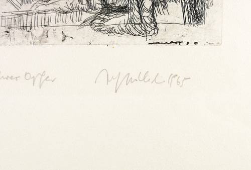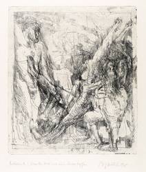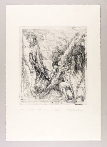 1962. Radierung / Strichätzung, in Schwarz, mit leichtem Plattenton, auf chamois Velinkarton. – Originale Künstlergrafik, von Alfred Hrdlicka. – Probedruck. – 44,1 x 38,5 cm (Darstellung / Platte), 77 x 54 cm (Blatt).