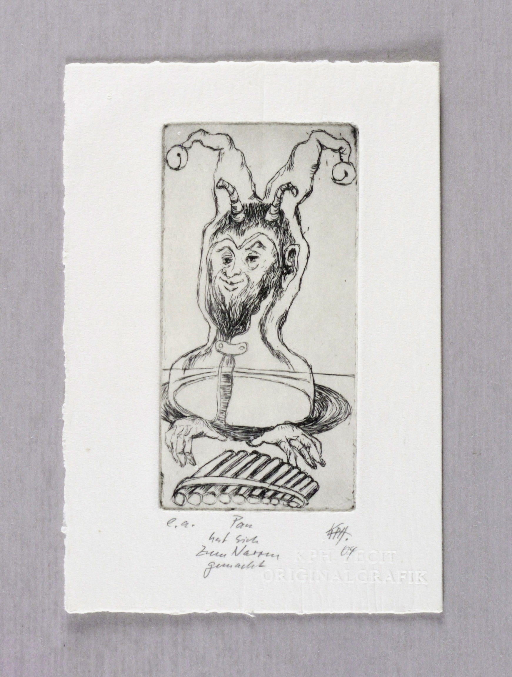 Rechts unten in Bleistift signiert und datiert: ″KPH 04″. Links Auflagenbezeichnung: ″e.a.″ Mittig Titel: ″Pan hat sich zum Narren gemacht″. Blindstempel des Künstlers. – Sehr guter Zustand.