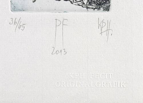 Rechts unten in Bleistift signiert: ″KPH″. Links Auflagenbezeichnung: ″36/65″. Mittig bezeichnet: ″PF 2013″. Blindstempel des Künstlers. – Sehr guter Zustand.