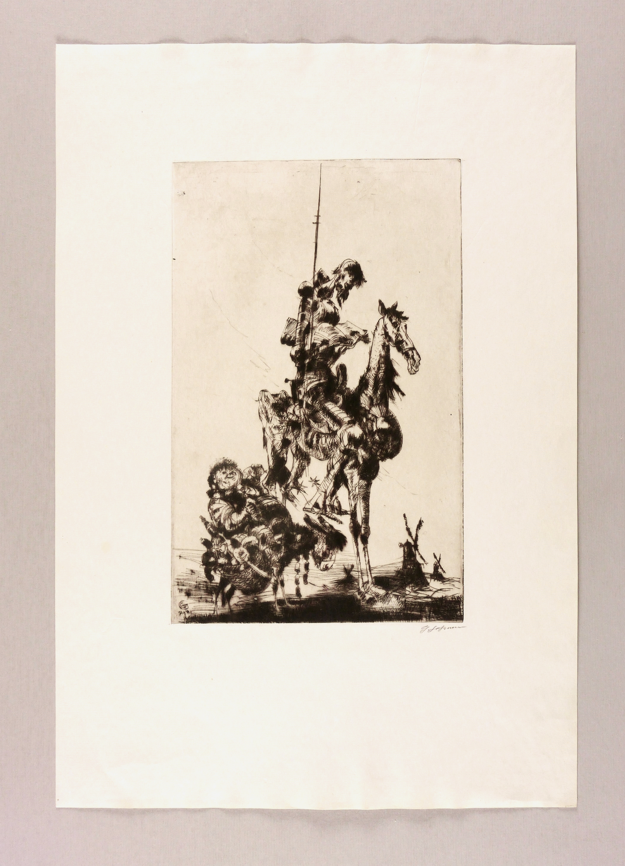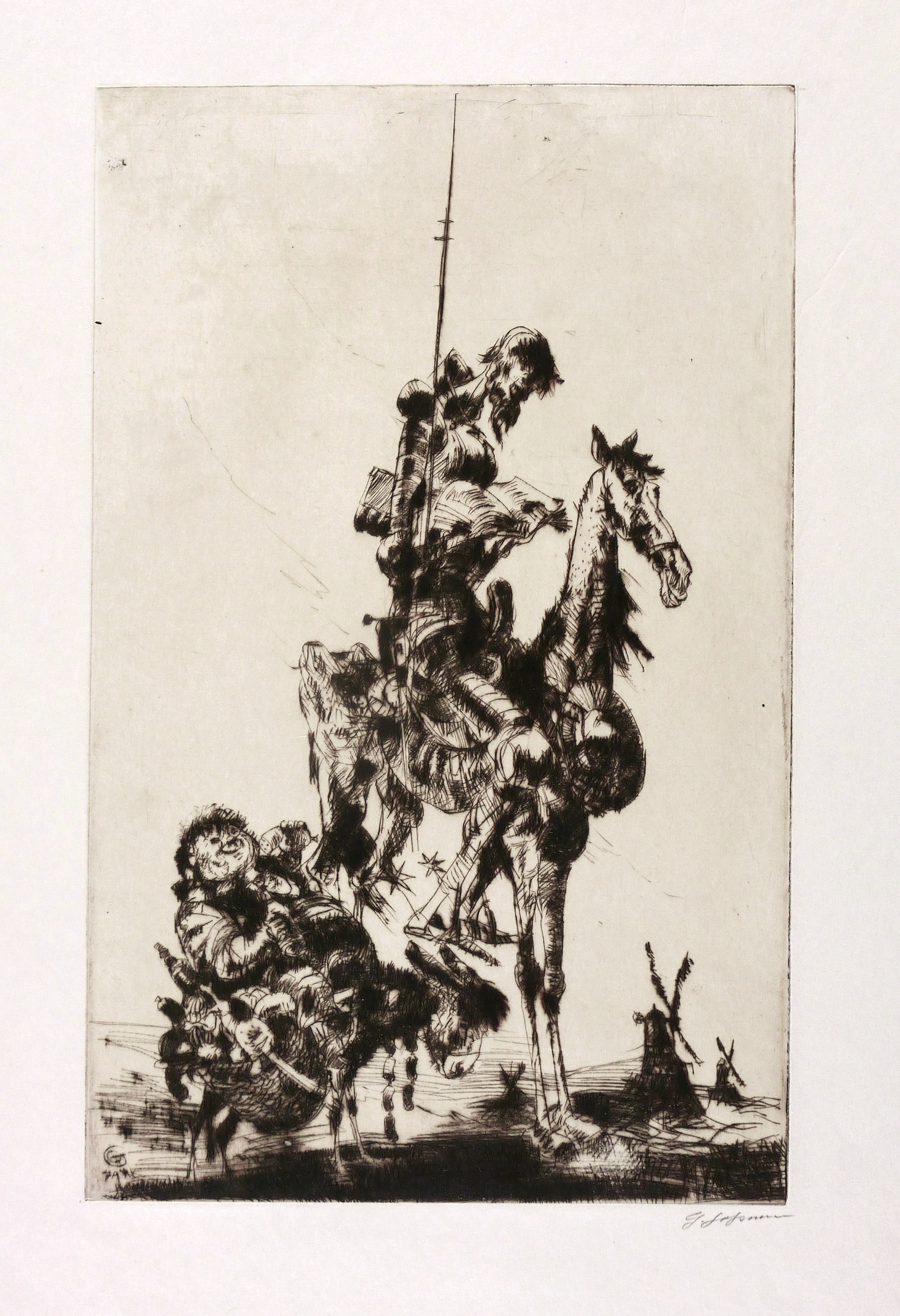 Rechts unten in Bleistift signiert: ″G. Goßmann″. In der Platte links unten Monogramm und Jahr: ″GG 74″. Verso bezeichnet: ″Don Quichote I, Rad.″ – Tadellos. Sehr guter Zustand.