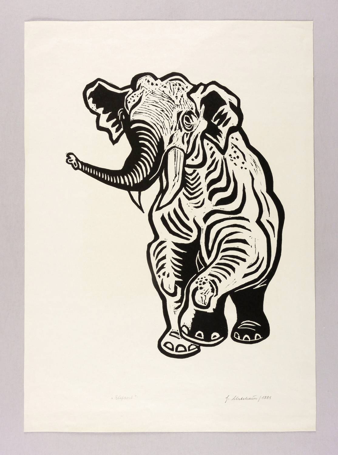 Rechts unten in Bleistift signiert und datiert: ″S. Unbehaun 81″. Links Titel: ″Elefant″. – Sehr guter Zustand.