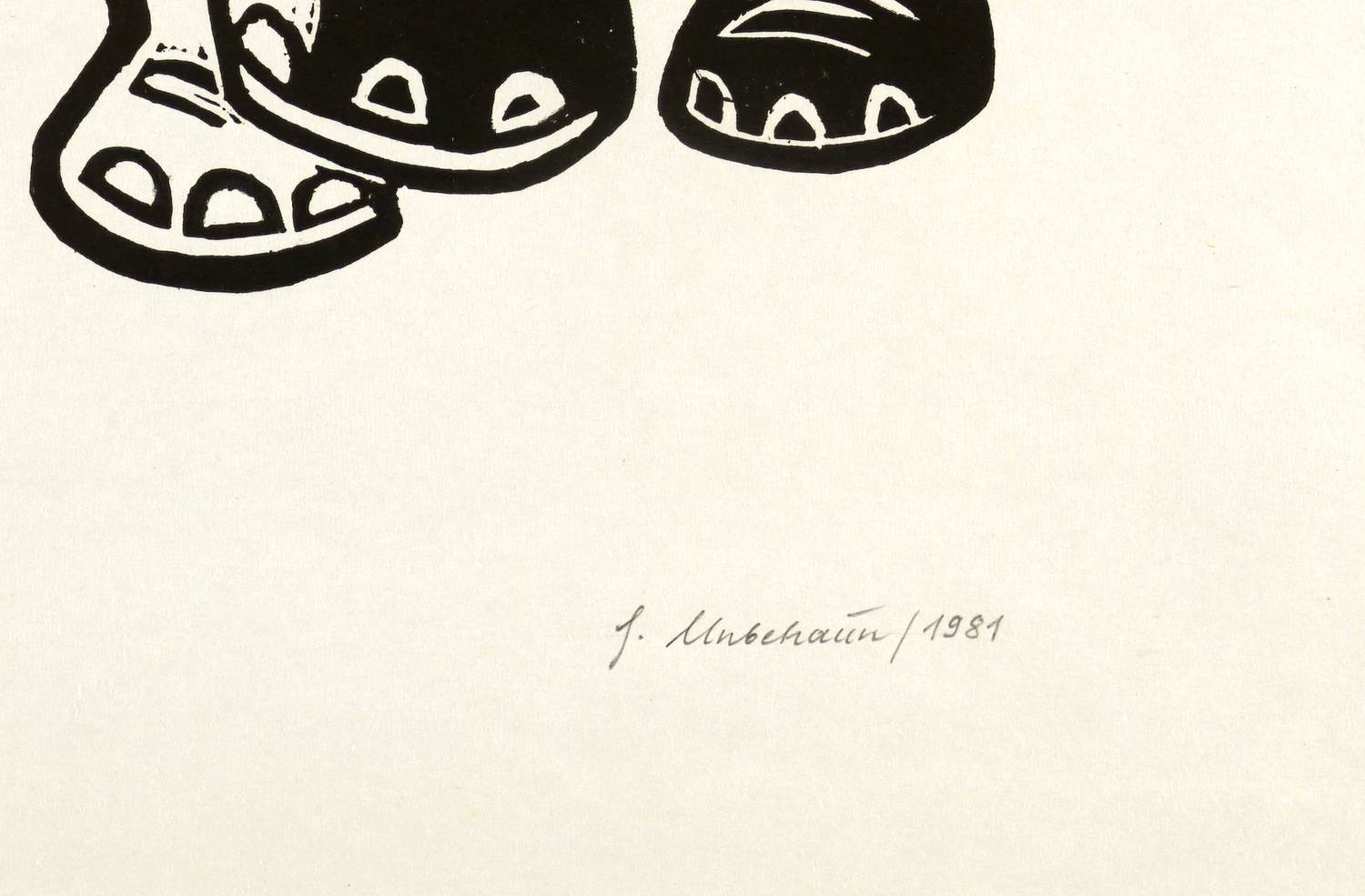 1981. Holzschnitt, in Schwarz, auf glattem hellchamois Velin. – Originale Künstlergrafik, von Deutsch (20. Jh.). – 36,1 x 28,0 cm (Darstellung / Druckbild), 52 x 37 cm (Blatt).