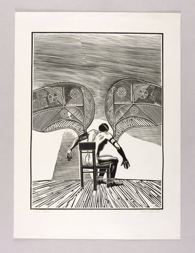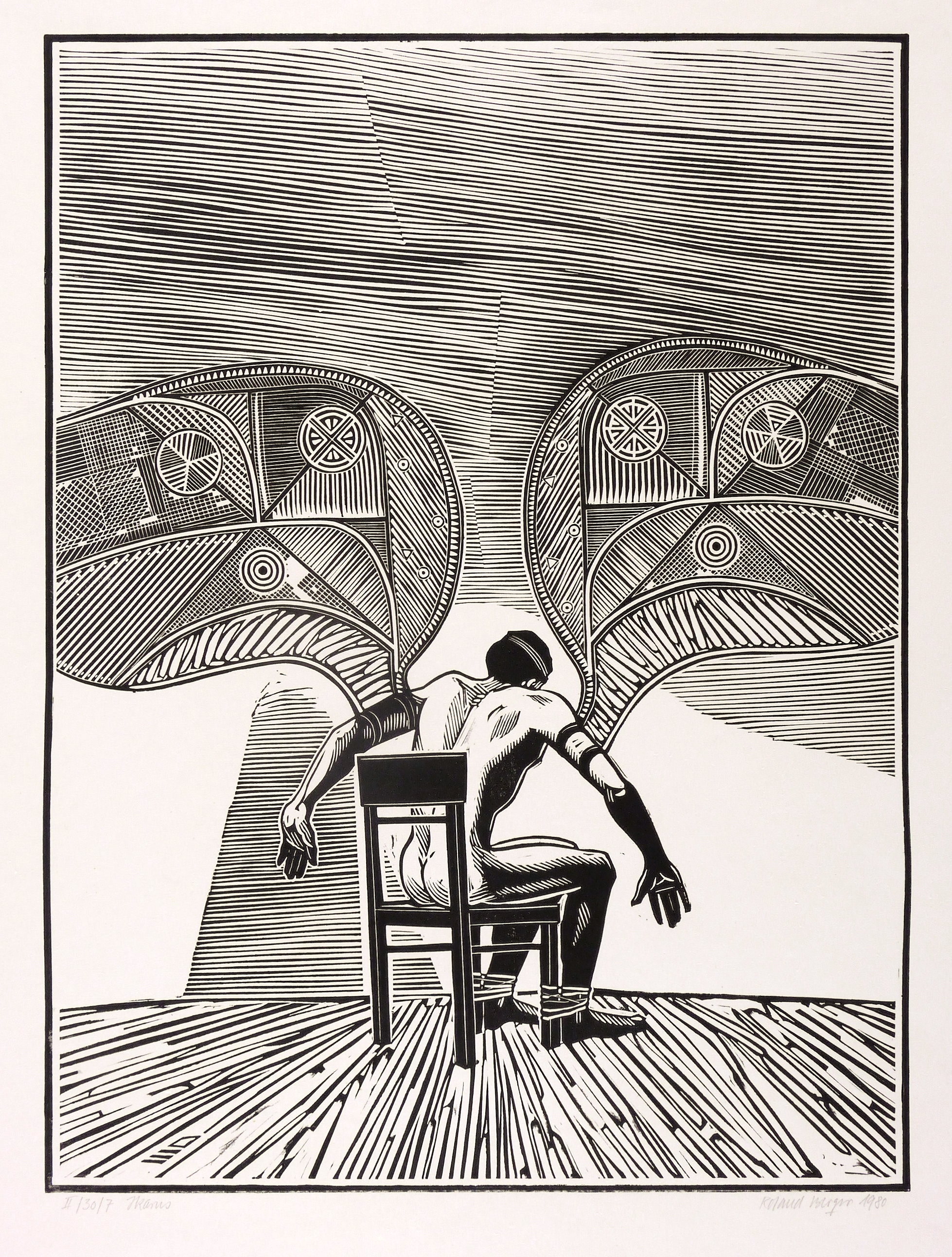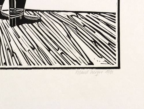 1980. Holzschnitt, in Schwarz, auf glattem hellchamois Velin. – Originale Künstlergrafik, von Roland R. Berger. – Auflage Exemplar Nr. 7/30. – 40,3 x 30,4 cm (Darstellung / Druckbild), 52 x 38 cm (Blatt).