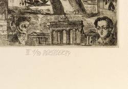 1984. Radierung / Kaltnadel, in Braunschwarz, auf weichem gelbem Velin. – Originale Künstlergrafik, von Dieter Dressler. – Auflage Exemplar Nr. III 1/50. – 29,0 x 24,2 cm (Darstellung / Druckbild), 29,8 x 24,8 cm (Platte), 54 x 40 cm (Blatt).