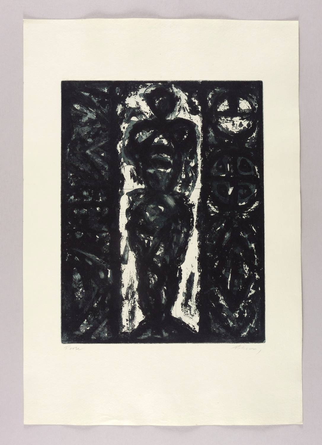 1981. Farbradierung / Aquatinta, in Grau & Schwarz, auf kräftigem chamois Velin. – Originale Künstlergrafik, von Wolfgang Petrovsky. – Probedruck. – 39,2 x 30,5 cm (Darstellung / Platte), 61 x 42 cm (Blatt).