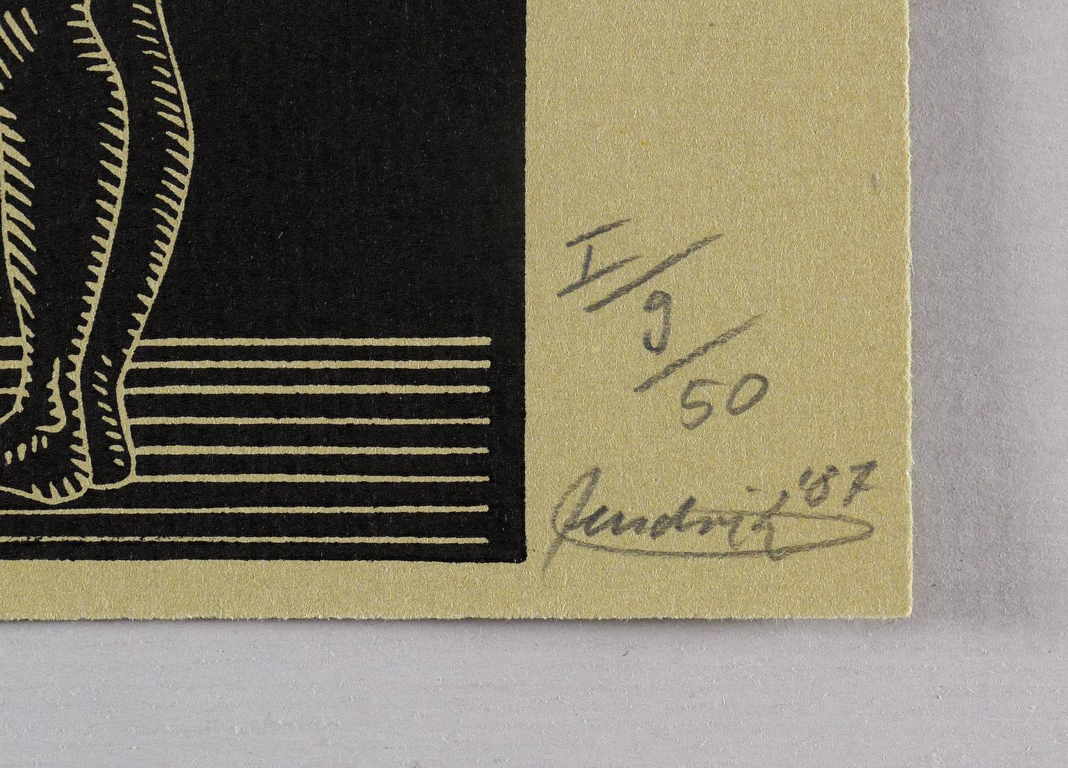 Rechts unten in Bleistift signiert und datiert: ″hendrik 87″. Darüber Auflagenbezeichnung: ″I/9/50″. – Sehr guter Zustand.