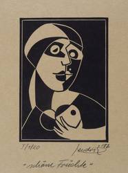 1987. Linolschnitt, in Schwarz, auf hellbraun getöntem Hahnemühle. – Originale Künstlergrafik, von Hendrik Hause. – Auflage Exemplar Nr. 1/20. – 12,8 x 9,2 cm (Darstellung / Druckbild), 21 x 17 cm (Blatt).
