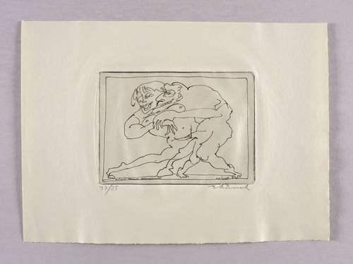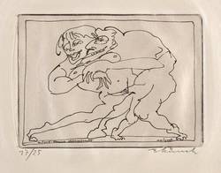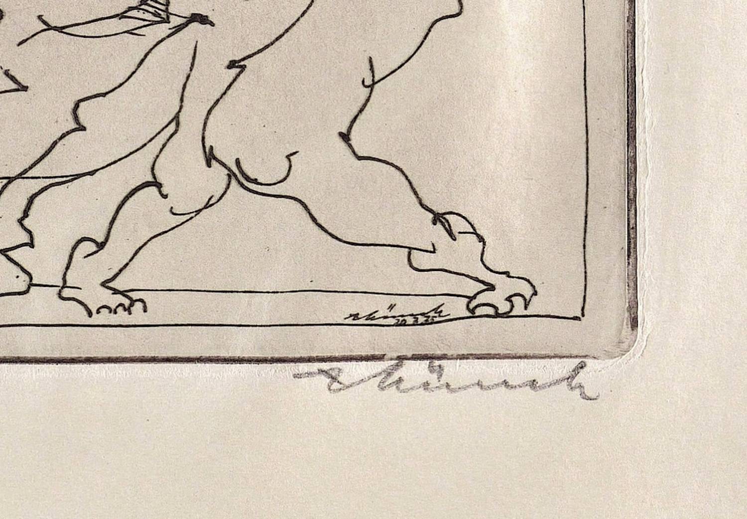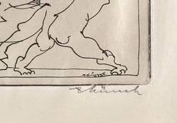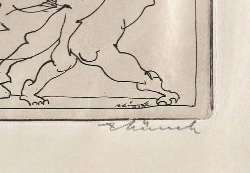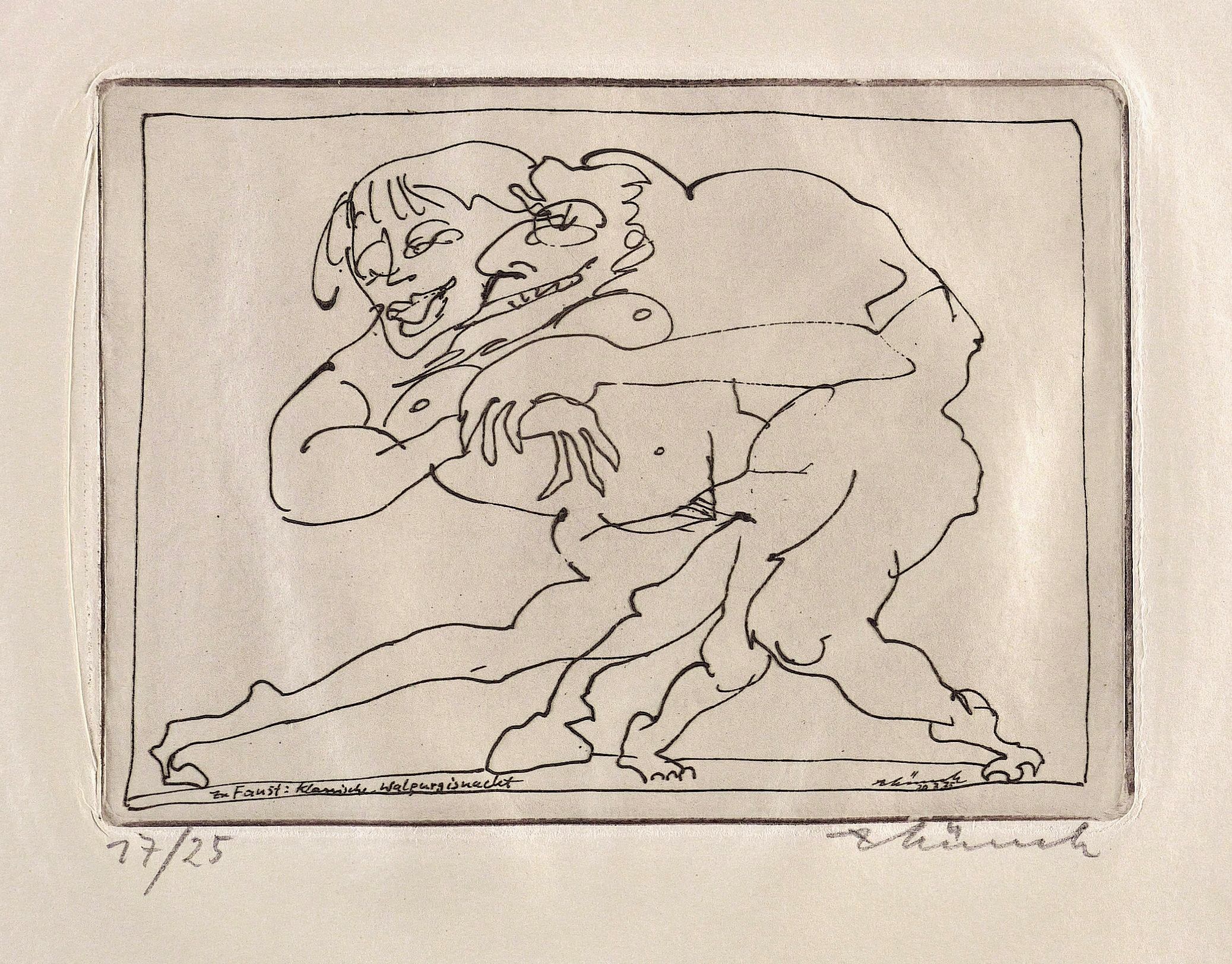 Rechts unten in Bleistift signiert: ″AMünch″. Links Auflagenbezeichnung: ″17/25″. In der Platte rechts unten zusätzlich Signatur und Datum: ″Münch 20.7.75″. Links Inschrift: ″zu Faust: Klassische Walpurgisnacht″. – Tadellos. Sehr guter Zustand.