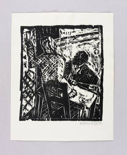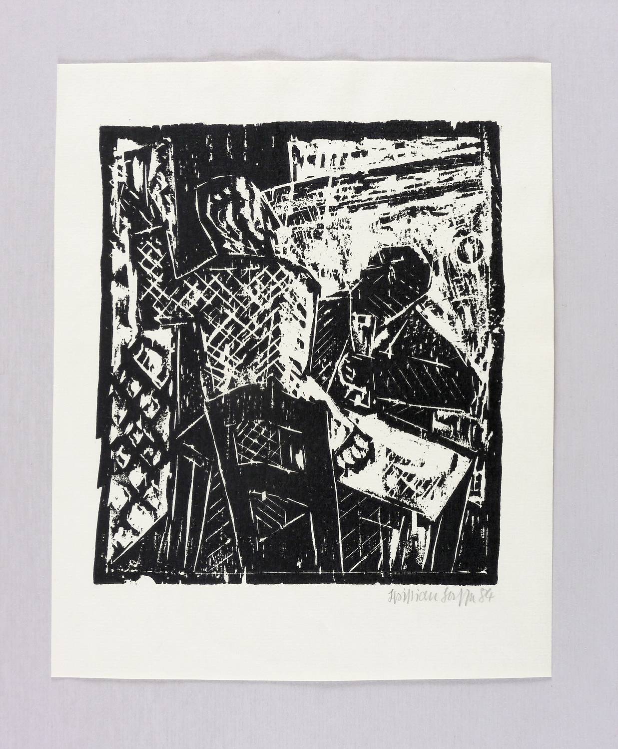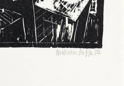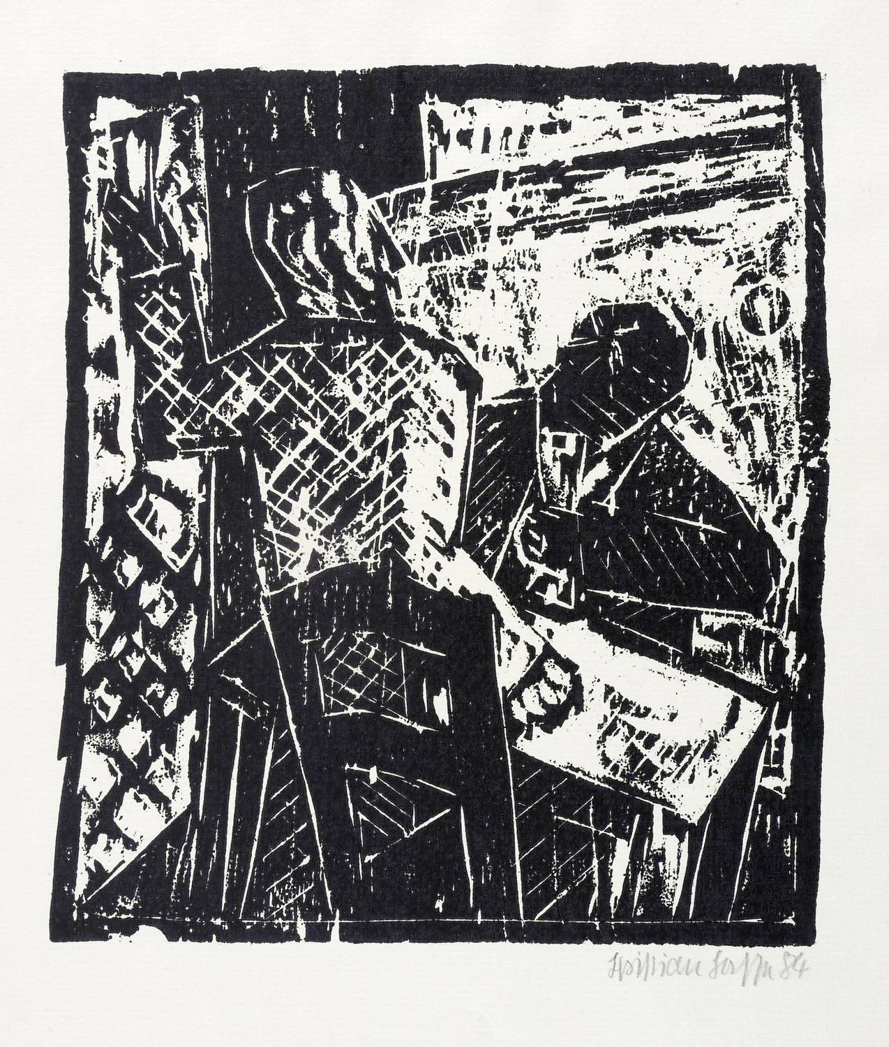 1984. Holzschnitt, in Schwarz, auf leichtem hellchamois Maschinenbütten. – Originale Künstlergrafik, von Christian Hasse. – 20,1 x 17,5 cm (Darstellung / Druckstock), 27 x 22 cm (Blatt).