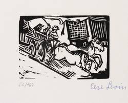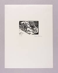 1941. Linolschnitt, in Schwarz, auf hellgelbem Velin. – Originale Künstlergrafik, von Julo Levin. – Auflage Exemplar Nr. 52/100. – 7,1 x 10,0 cm (Darstellung / Druckstock), 33 x 25 cm (Blatt).