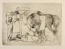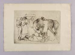1950-1960. Radierung / Kaltnadel, in Schwarz, auf gelbem Velin. – Originale Künstlergrafik, von Bert Heller. – 21,8 x 29,7 cm (Darstellung / Platte), 31 x 43 cm (Blatt).