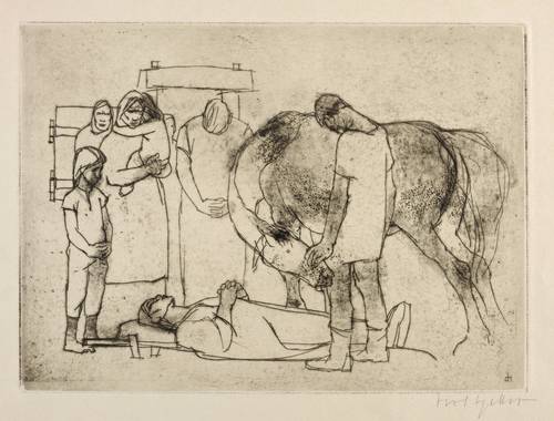 Bert Heller (1912 Aachen - 1970 Berlin). Deutscher Maler und Grafiker. 1927-30 Studium an der Kunstgewerbeschule Aachen bei Anton Wendling und Jordan-Bozen. Danach Studienreisen nach Holland, Belgien und Österreich. Freischaffend in Laurensberg tätig. 1932 mit Adda Kesselkaul und Richard Birnstengel erste Ausstellung im Städtischen Suermondtmuseum Aachen. Ab 1940 Studium an der Kunstakademie in München. 1946-50 Dozent an der Kunstschule Wernigerode. 1950-53 Meisterschüler von Heinrich Ehmsen an der Akademie der Künste Berlin. 1953 Professur für Malerei an der Hochschule für Bildende und Angewandte Kunst Berlin-Weißensee, 1956-58 Rektor ebenda. 1954 Studienreise nach China, 1955 nach Paris. 1955 mit Bernhard Kretschmar, Werner Klemke, Harald Metzkes und Fritz Chremer Ausstellung in der Deutschen Akademie der Künste Berlin. Ab 1958 in Berlin-Spindlersfeld ansässig. 1965 Mitglied der Deutschen Akademie der Künste Berlin.