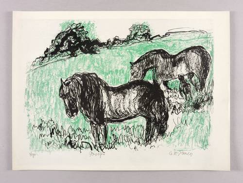 Links unten in Bleistift signiert: ″CE Pauly″. Links Titel: ″Ponys″. – Sehr guter Zustand.
