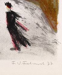 1977. Farblithografie / Kreide- & Pinsellithografie, in 4 Farben, auf hellchamois Weißenborn. – Originale Künstlergrafik, von Friedrich-Wilhelm Fretwurst. – Auflage Exemplar Nr. 13/150. – 30,0 x 37,5 cm (Darstellung / Druckbild), 36 x 49 cm (Blatt).
