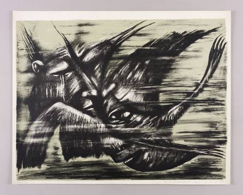 Rechts unten in Bleistift signiert und datiert: ″h.h.g. 77″. Daneben Titel: ″zu A. Wosnessenski 'Goya'″. Links eigenhändige Auflagenbezeichnung: ″132/150″. – Sehr guter Zustand.