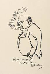 Herbert Sandberg (1908 Posen - 1991 Berlin). Deutscher Grafiker, Redakteur und Karikaturist. 1925/26 Studium an der Kunstgewerbeschule Breslau und der Staatliche Akademie für Kunst und Kunstgewerbe bei Otto Mueller. 1928-33 Illustrationen für verschiedene Berliner Zeitungen (u.a. Berliner Tageblatt). 1929 Mitglied Assoziation revolutionärer bildender Künstler (ARBKD). Als Jude und Kommunist 1934 inhaftiert. 1938-45 im Konzentrationslager Buchenwald. 1945-50 Mitherausgeber der Satirezeitschrift "Ulenspiegel". 1947-61 gemeinsam mit seiner Frau Eugenie zahlreiche Bühnenbilder für Berliner Theater unter dem Namen "Sandbergkollektiv". 1954-57 Chefredakteur der Zeitschrift "Bildende Kunst". Danach freischaffend in Berlin. 1970-72 Gastdozent an der Hochschule für Grafik und Buchkunst Leipzig (HGB), 1972 Professor. Mitglied der Akademie der Künste der DDR.