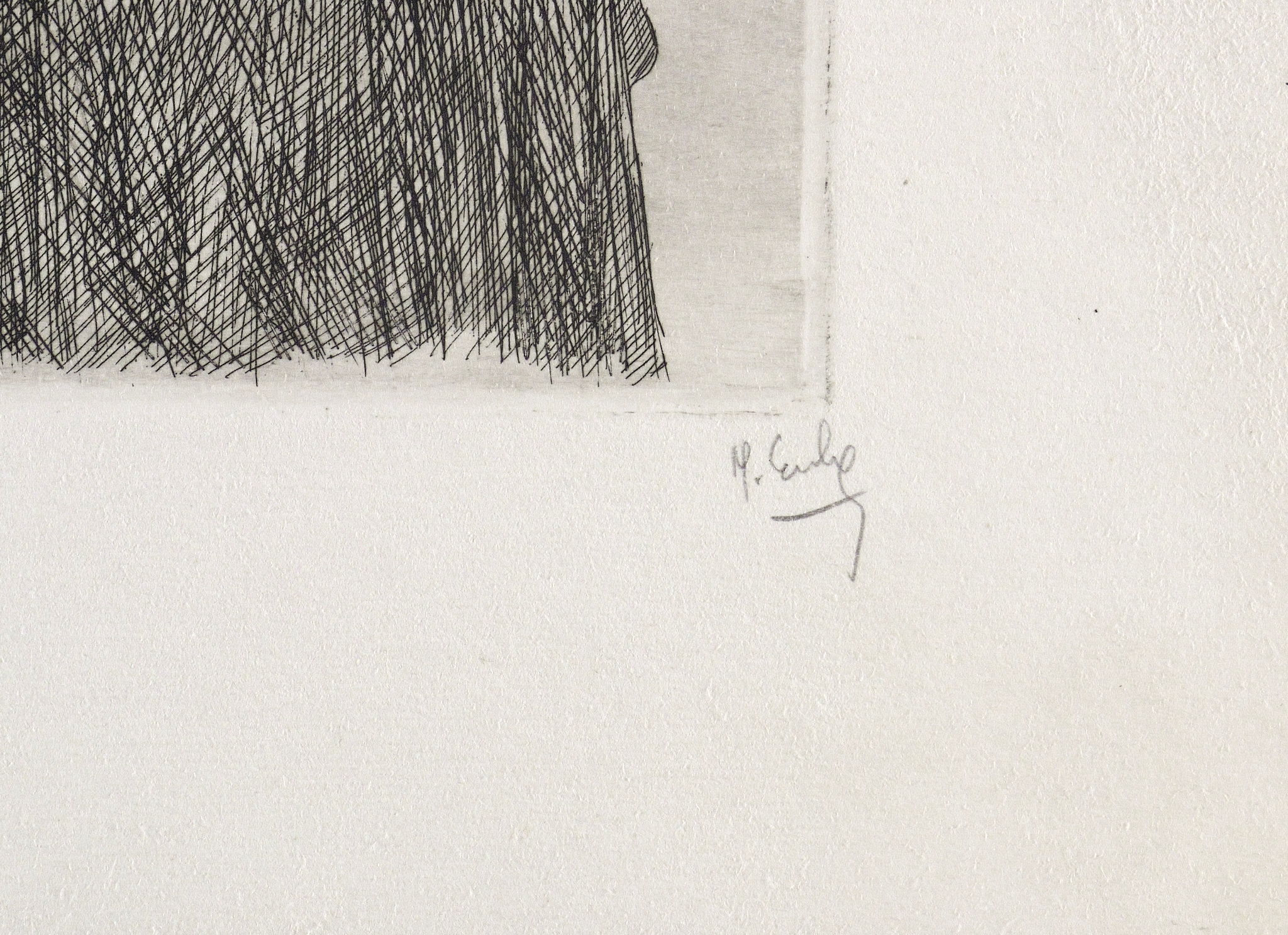 1965. Radierung / Strichätzung, in Schwarz, auf hellchamois Velinkarton. – Originale Künstlergrafik, von Hans Escher. – Auflage Exemplar Nr. 1/30. – 19,5 x 29,8 cm (Darstellung / Platte), 29 x 39 cm (Blatt).
