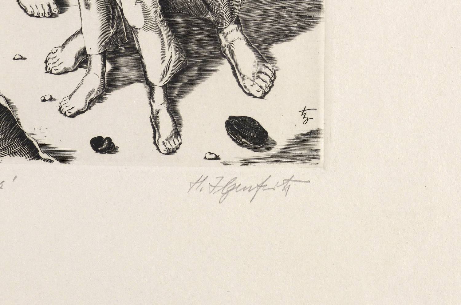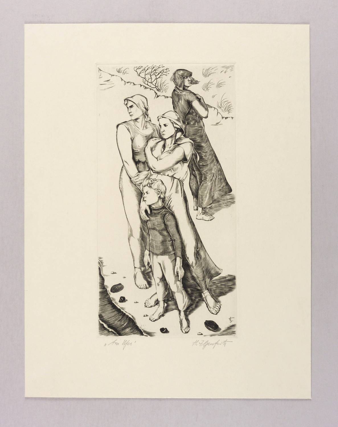 Rechts unten in Bleistift signiert: ″H. Ilgenfritz″. Links Titel: ″Am Ufer″. In der Platte links unten gestochenes Monogramm. – Tadellos. Sehr guter Zustand.
