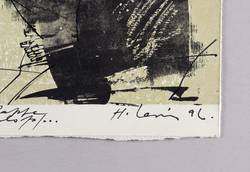 Rechts unten in schwarzer Tuschfeder signiert und datiert: ″H. León 92″. Links Titel: ″Die Zeit ist ein Rappe im Galopp″. Dazu bezeichnet: ″P/A″. – Provenienz: Sammlung Gerlint und Gert Söder, Dresden. – Sehr guter Zustand.
