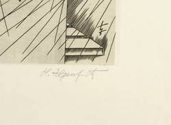 1950-1960. Kupferstich / Linienstich, in Schwarz, auf festem gelbem Velinkarton. – Originale Künstlergrafik, von Heinrich Ilgenfritz. – 29,3 x 19,8 cm (Darstellung / Platte), 43 x 35 cm (Blatt).