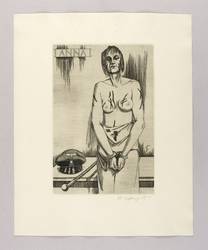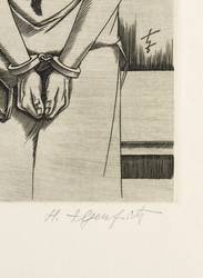 1950-1960. Kupferstich / Linienstich, in Schwarz, auf festem gelbem Velinkarton. – Originale Künstlergrafik, von Heinrich Ilgenfritz. – 29,2 x 19,8 cm (Darstellung / Platte), 44 x 35 cm (Blatt).