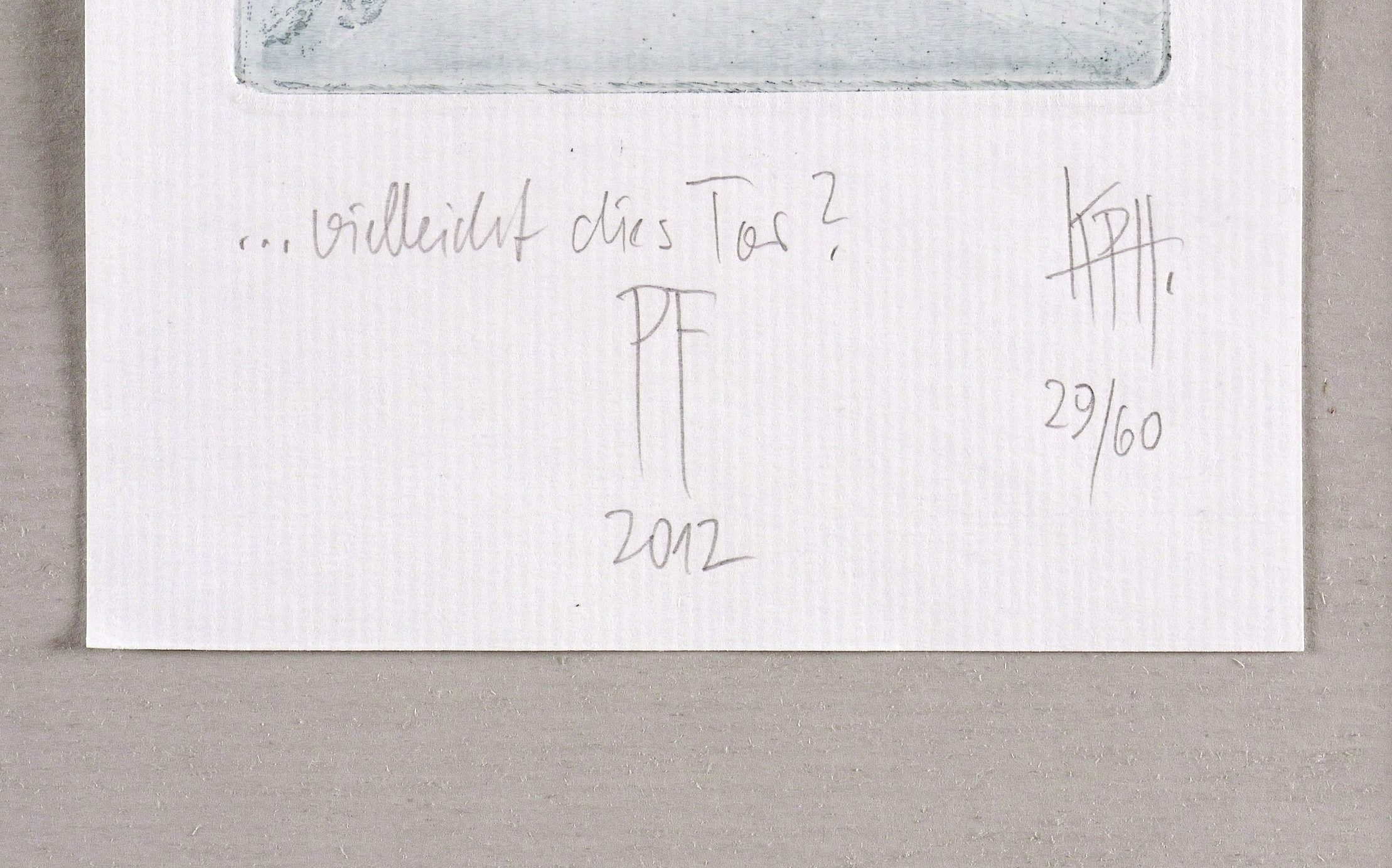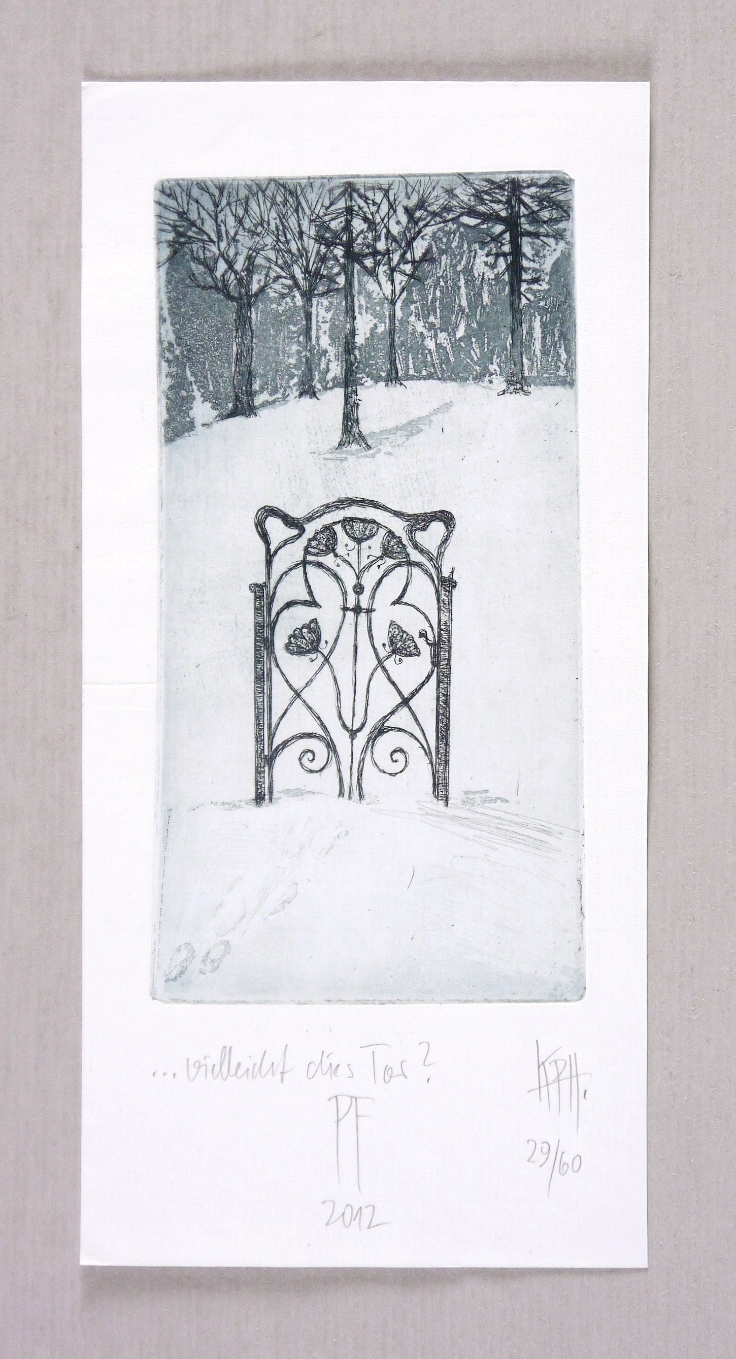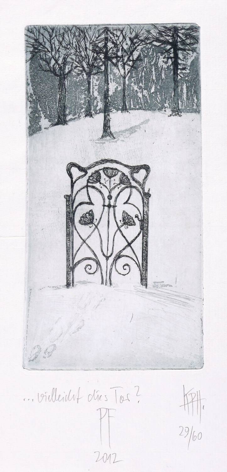 Rechts unten in Bleistift signiert: ″KPH″. Links Titel: ″...vielleicht dies Tor?″ Weiter Jahr und Auflagenbezeichnung: ″2012 // 29/60″. – Sehr guter Zustand.