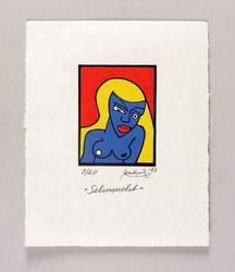 1987. Farblinolschnitt, in 4 Farben, auf rauem hellchamois Velin. – Originale Künstlergrafik, von Hendrik Hause. – Auflage Exemplar Nr. 8/20. – 9,6 x 7,4 cm (Darstellung / Druckbild), 22 x 18 cm (Blatt).