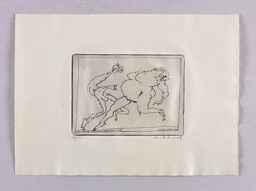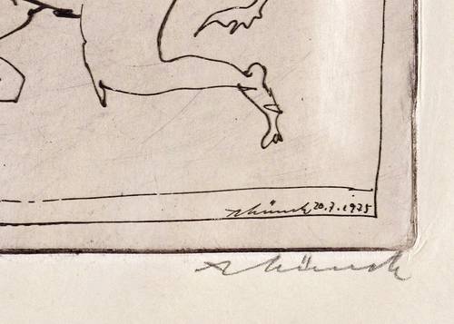Rechts unten in Bleistift signiert: ″AMünch″. Links Auflagenbezeichnung: ″17/25″. In der Platte rechts unten zusätzlich Signatur und Datum: ″Münch 20.7.1975″. Links Inschrift: ″zu Faust: Klassische Walpurgisnacht″. – Tadellos. Sehr guter Zustand.